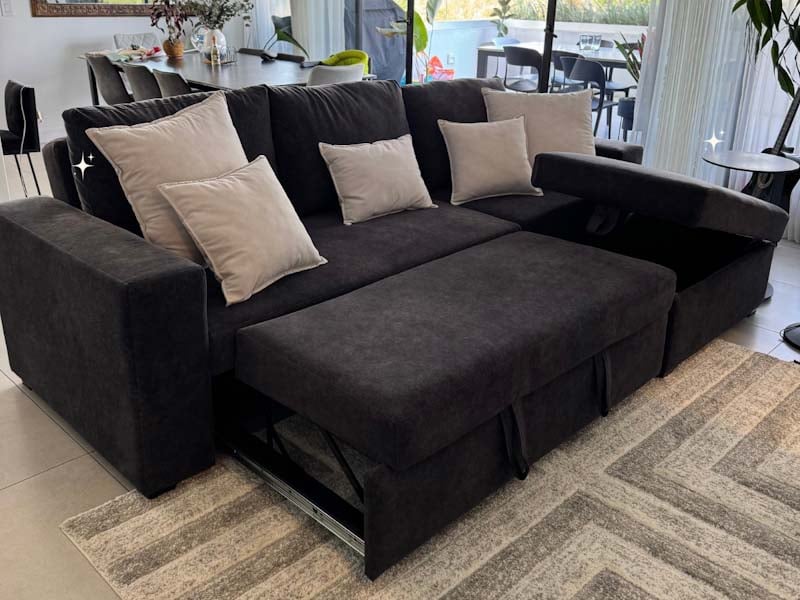 Sofá cama gaveta nido triple retráctil extra confortable en lino negro 2,1m
